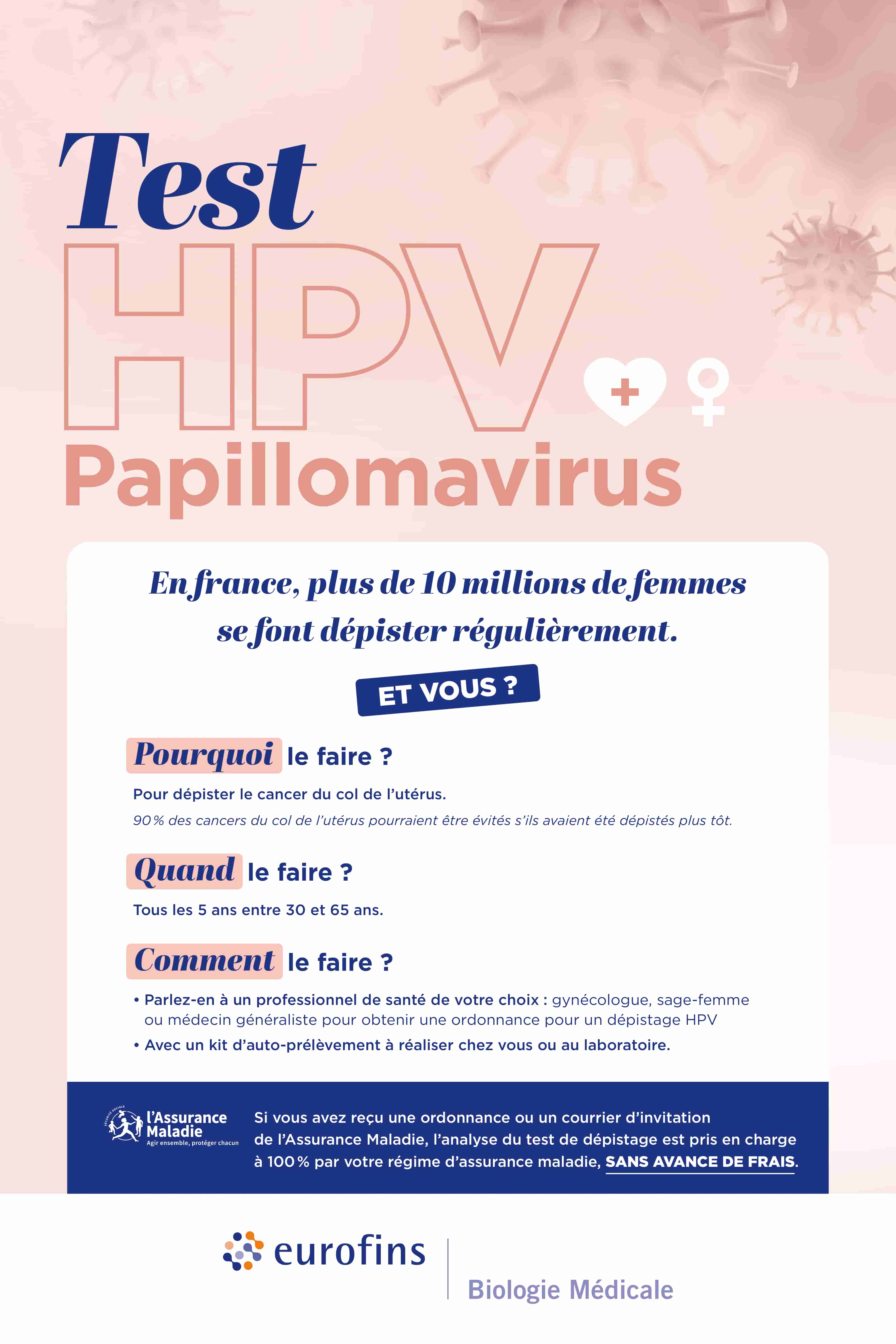 Le kit d’auto-prélèvement du papillomavirus est disponible immédiatement et gratuitement sur simple demande dans votre laboratoire Eurofins Biologie Médicale.