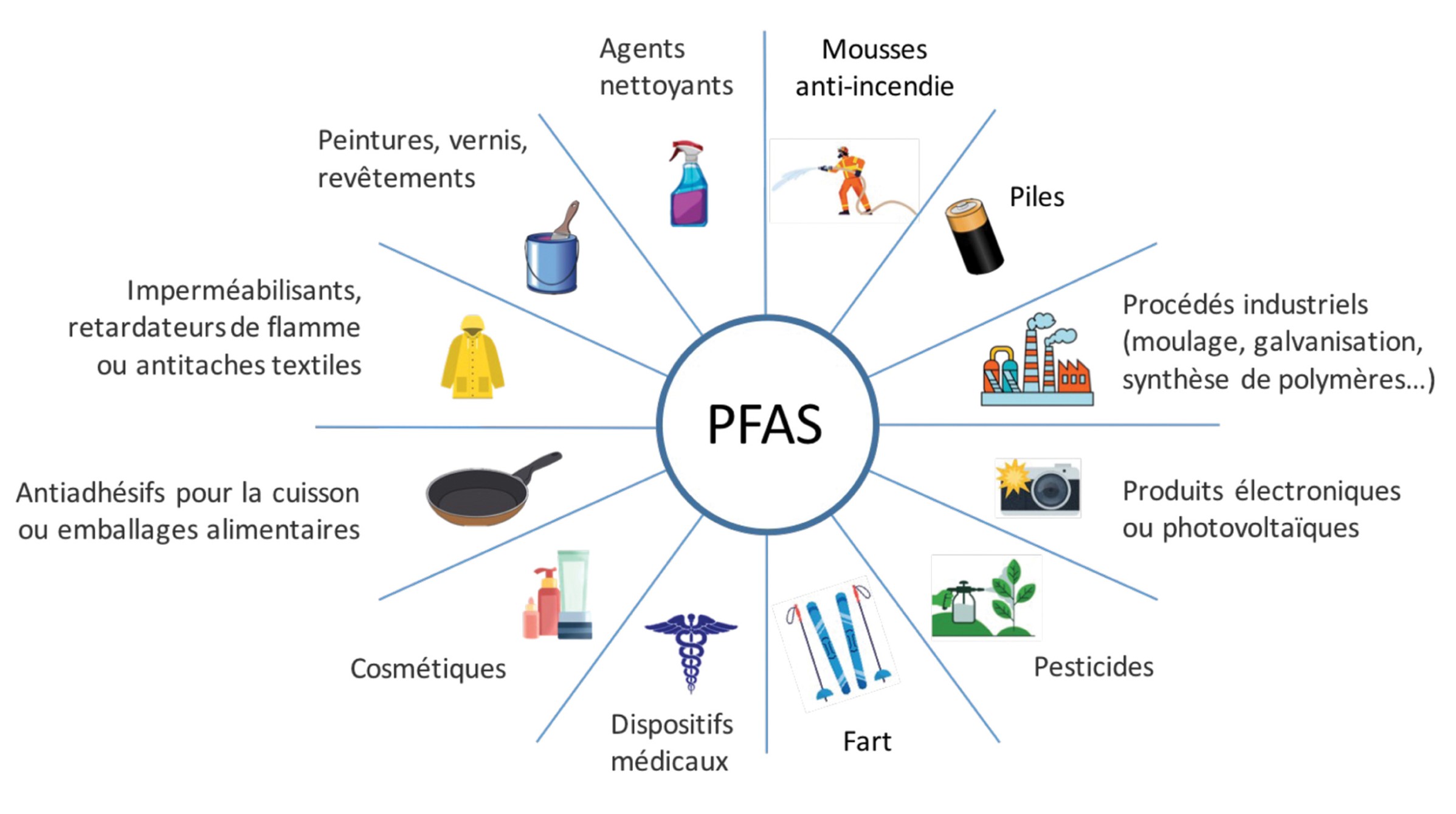 Les substances per- et polyfluoroalkylées (PFAS) représentent une vaste famille de plusieurs milliers de composés chimiques. Utilisées depuis les années 1950, ces substances sont appréciées pour leurs propriétés antiadhésives, imperméabilisantes et résistantes aux fortes chaleurs.